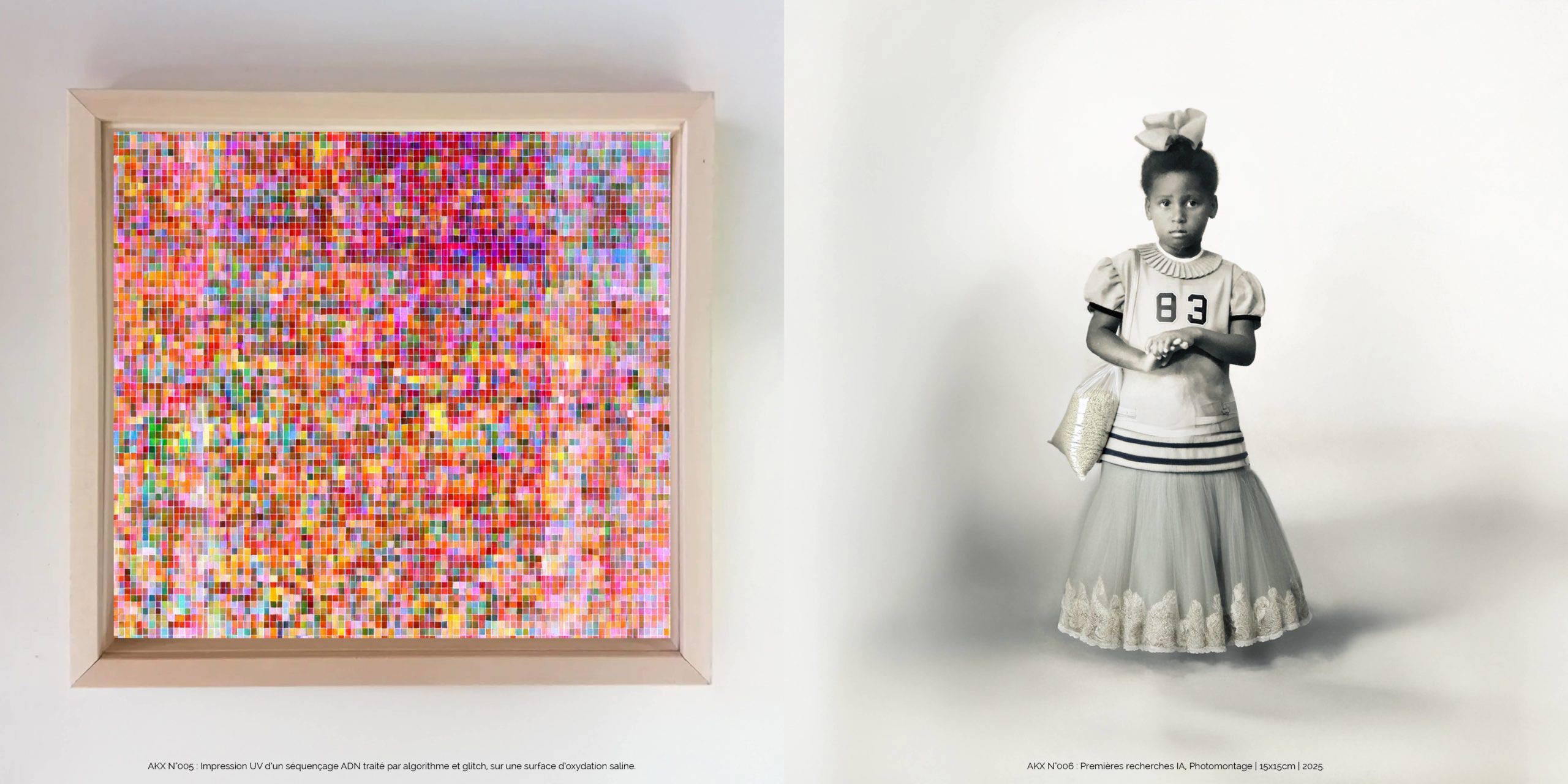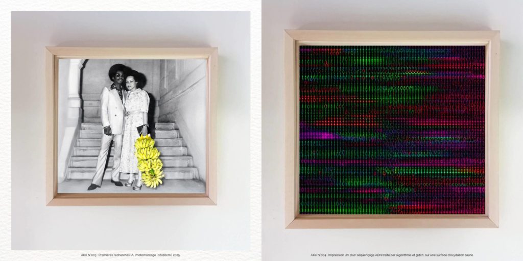 FANTÔMES FAMILIAUX convoque l’art contemporain comme espace de fouille : là où l’histoire collective ensevelit les récits intimes, l’œuvre exhume. Par le prisme du test ADN — artefact scientifique devenu objet esthétique —, elle cartographie les ramifications invisibles qui relient le corps à la mémoire des peuples. L’identité n’est plus une donnée fixe mais une strate, un palimpseste biologique où s’inscrivent les silences de l’Histoire. Une odyssée des gènes qui interroge ce que l’art seul peut révéler : l’intime comme archive du monde.