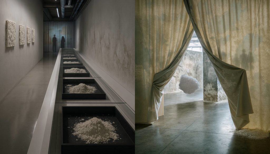 Le sel devient alors un médium de relation, capable de révéler les circulations invisibles entre corps, territoires et systèmes culturels.