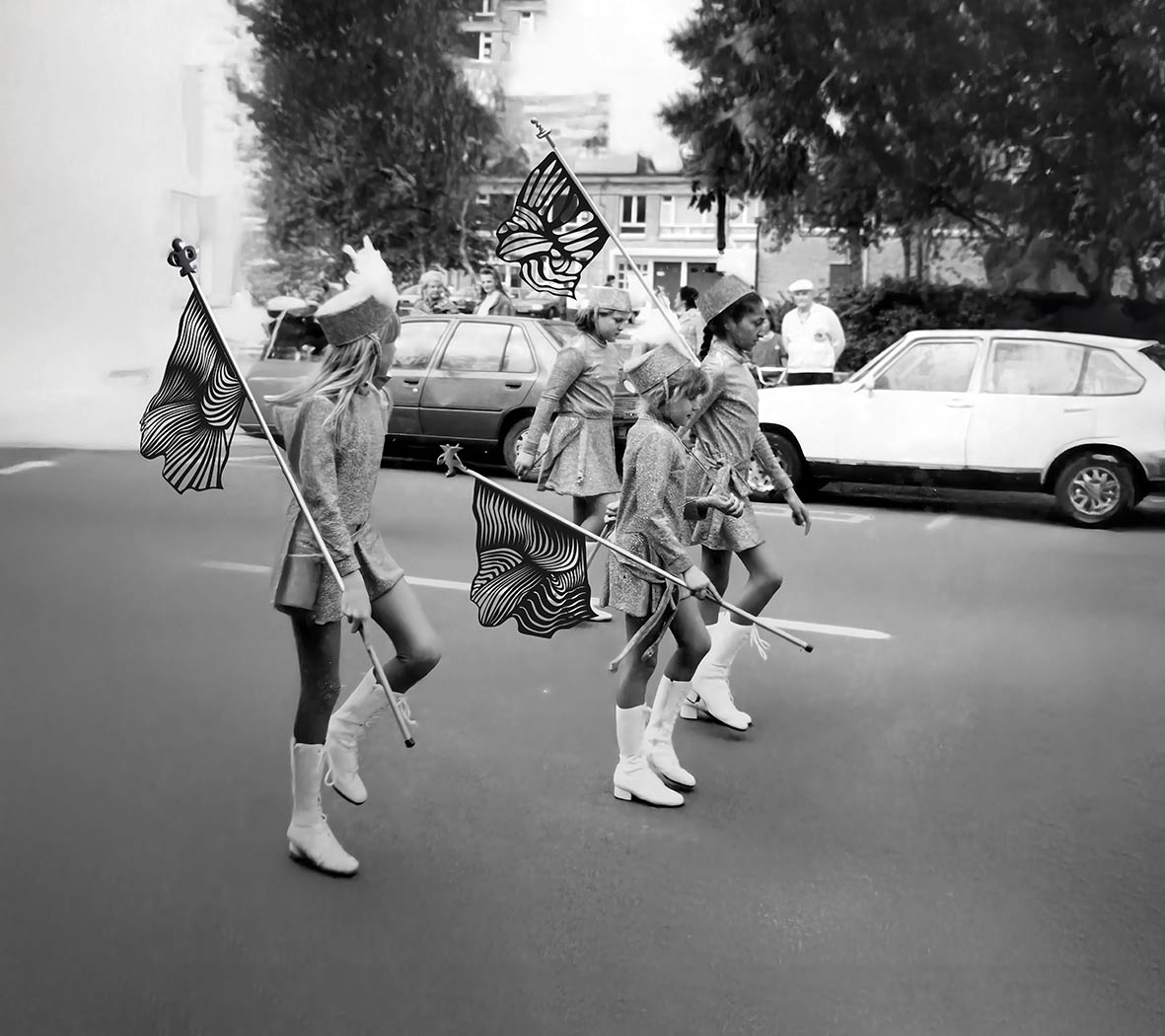 Fantômes & familles Drapeaux de peau. Photographie, épreuve d’artiste. Tirages photographiques numériques, 24 × 24 cm. © 2025 José Man Lius / ADAGP
